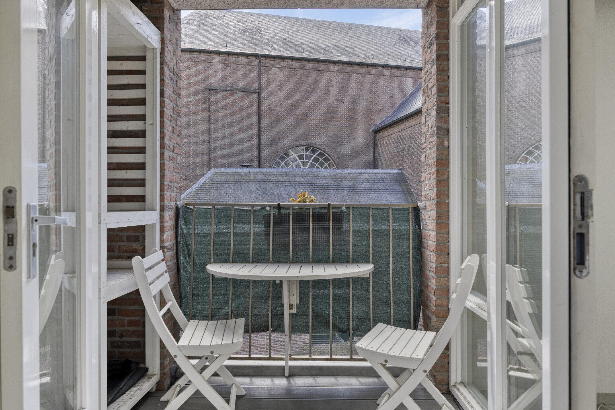 Buiten heb je de beschikking over een knus balkon. Precies groot genoeg voor een gezellig zitje met twee stoelen en een tafeltje, de perfecte plek om van het zonnetje te genieten midden in de stad.