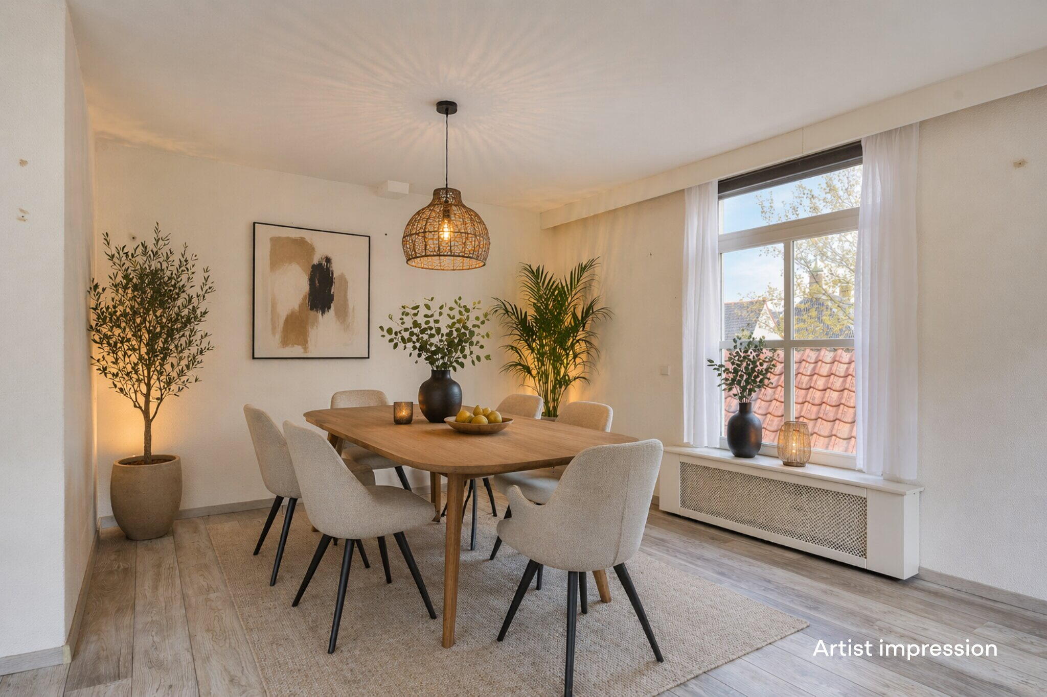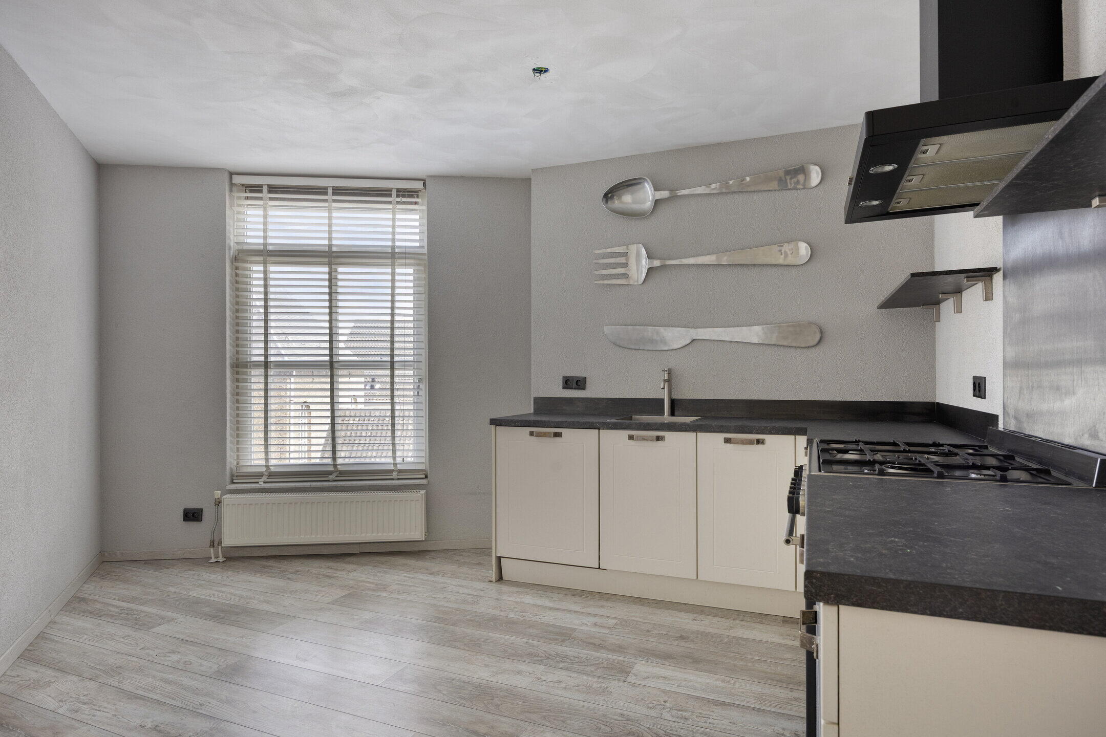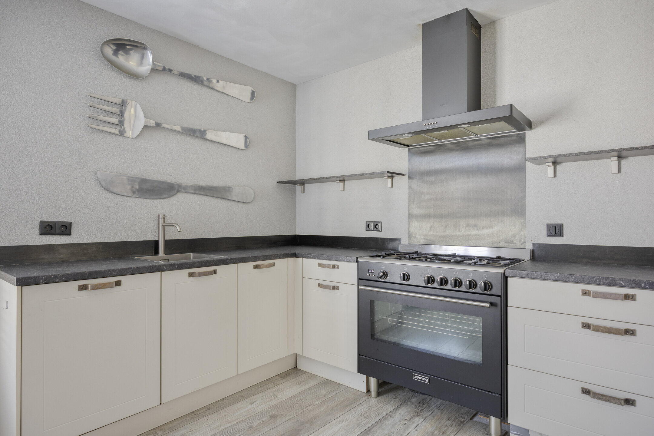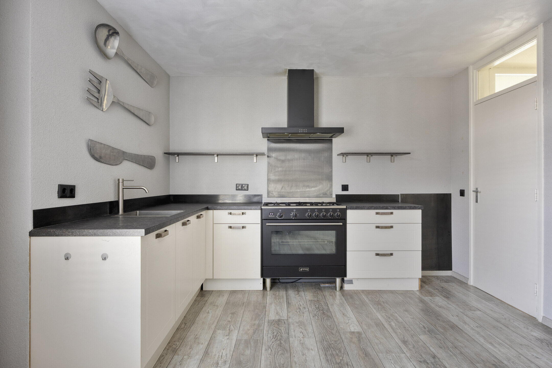 De woonkamer is heerlijk ruim en baadt in het licht, wat zorgt voor een aangename en open sfeer. Dankzij de speelse indeling met een subtiele afscheiding kun je hier eenvoudig gezellige hoekjes creëren, zoals een knusse zithoek of een fijne werkplek. De keuken bevindt zich in een aparte ruimte en is eveneens ruim opgezet. Ook hier geniet je van veel lichtinval. De keuken is netjes afgewerkt en voorzien van alle gemakken, met volop ruimte om te koken én op te bergen.