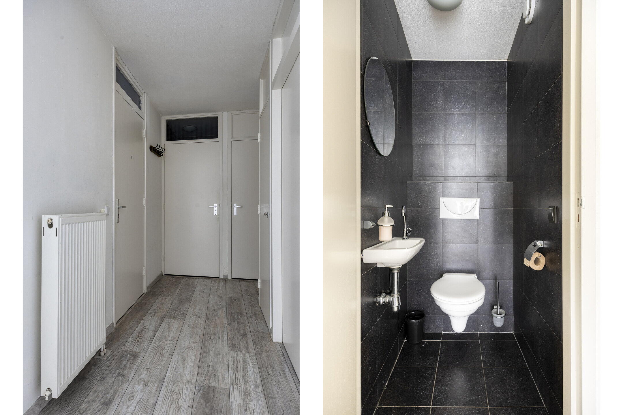 Via de verzorgde entree kom je het appartement binnen. Hier vind je direct een nette ontvangst met een apart toilet — altijd prettig voor jou en je gasten.